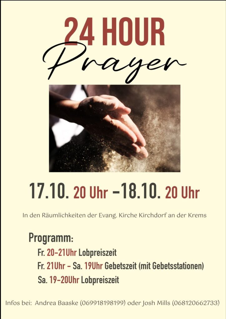 Für persönliche Gebetsanliegen erreicht ihr wie gewohnt unser Gebetsteam unter gebetsanliegen@evang-kirchdorf.at